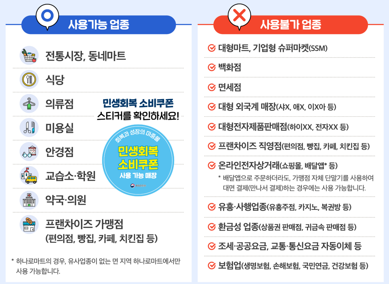 지원금을 받았다면 이제 현명하게 사용할 차례! 사용할 수 있는 곳과 없는 곳을 꼭 확인하세요.
