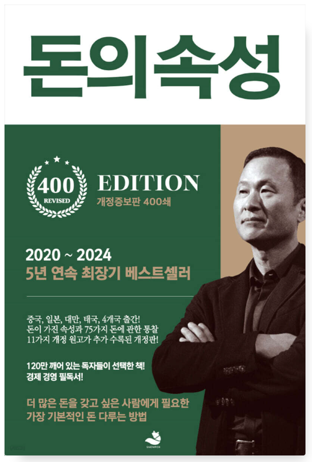 『돈의 속성』은 누적 100만 부 이상 판매된 베스트셀러로, 30년 넘게 사업을 하며 직접 부를 이룬 김승호 회장이 자신의 삶과 통찰을 집약해 쓴 책입니다.