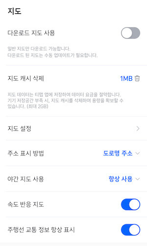글씨 크기에 따라 화면에 보이는 위치 정보의 개수는 아주 조금 다르게 표시되는 것 같습니다. 다만 글씨 크기를 '크게' 선택 시 주변 가게 이름 표시가 도로 영역 이미지를 침범할 수도 있고 전체적인 주행 경로 확인에 식별이 지저분하게 보일 수 있으므로 상단의 미리 보기 창을 확인하고 설정하기를 추천드립니다.